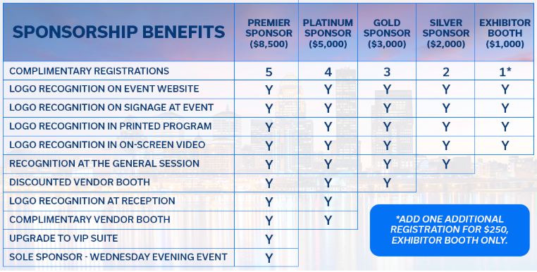 The Gold Level Sponsorship includes the opportunity to purchase an Exhibit Booth for a discounted price of $450 (regularly $1,000). If you are interested in adding a booth to your registration, please select this below.